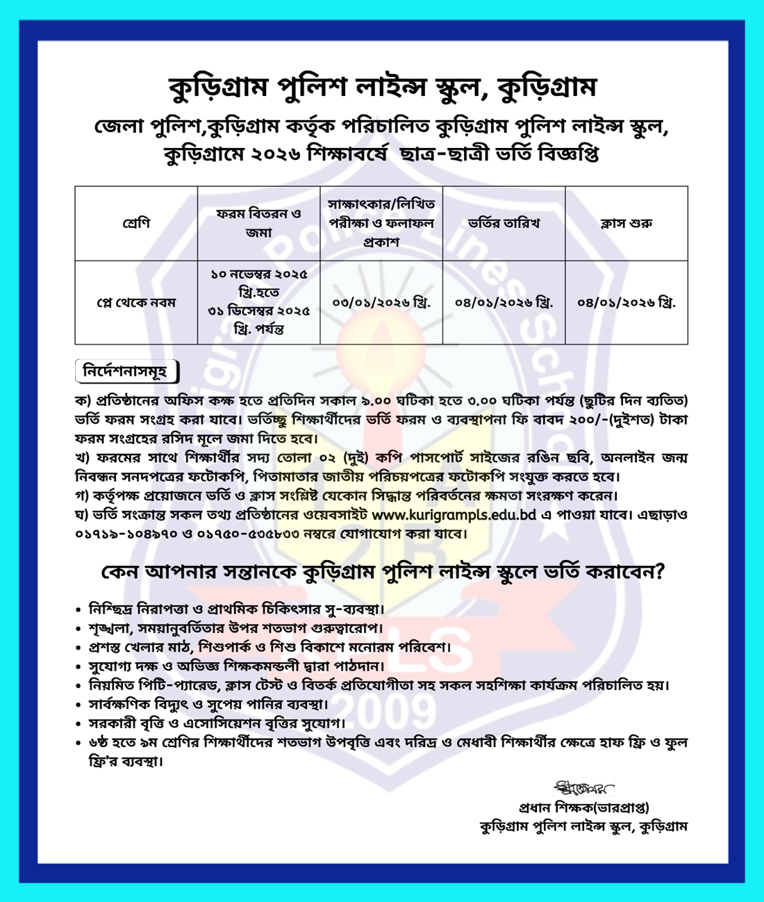 ২০২৬ শিক্ষাবর্ষে প্লে থেকে নবম শ্রেণি পর্যন্ত ছাত্র-ছাত্রী ভর্তি বিজ্ঞপ্তি